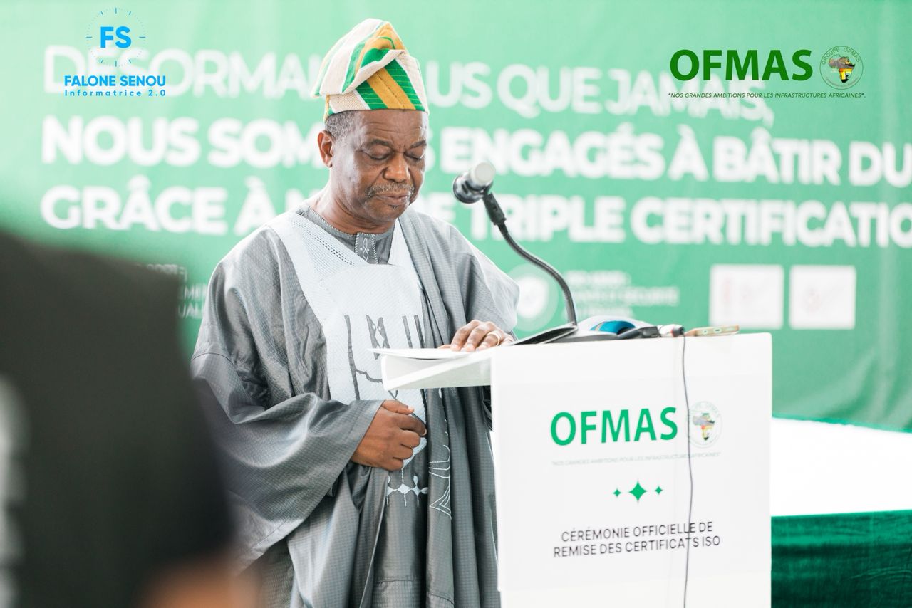 Intervenant à son tour, Mathieu Château, représentant de AB Certification, a félicité OFMAS et son Président-Directeur Général pour cet exploit. « Une triple certification ISO, c’est la reconnaissance internationale des bonnes pratiques mises en place par un organisme ainsi que la conformité de ses processus à l’ensemble des exigences définies par ces normes », a-t-il déclaré. Il a précisé aussi que cette distinction fait suite à un audit dense, exigeant et riche en échanges, à l’issue duquel l’équipe d’audit a pu recommander sans réserve la certification de l’organisme selon ses trois référentiels. Ainsi, il a profité de l’occasion a pour saluer l’engagement et les valeurs incarnées par l’entreprise.